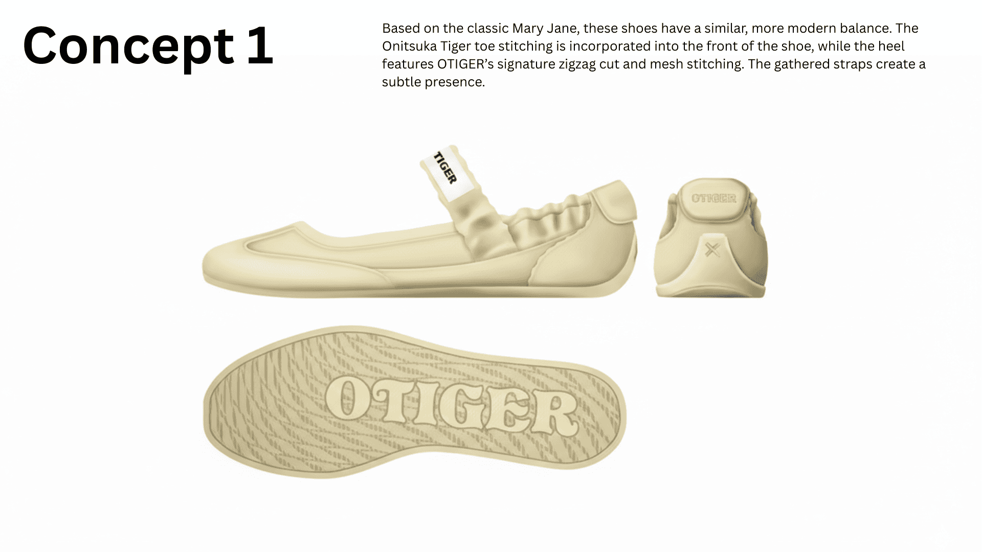As a product designer, I worked on trend, color, and form exploration for O TIGER SS26, a new line Onitsuka Tiger is developing to specifically target female consumers, expanding beyond the brand’s predominantly unisex main line. My role focused on researching women’s fashion and footwear trends, building seasonal color stories, and translating those insights into silhouette, material, and detailing explorations. The project reframes Onitsuka Tiger’s design language through a more female-centered lens, prioritizing expression, fit, and visual identity while maintaining the brand’s performance forward sensibility.